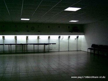 Der zweite Teil ist die Schießhalle mit einem Schießstand für Kurzwaffen (25m) und einem Schießstand für Langwaffen (50m). Dieser Schießstand ist für die meisten gängigen Kaliber (Klein- und Großkaliber, sowie Vorderlader etc.) zugelassen.